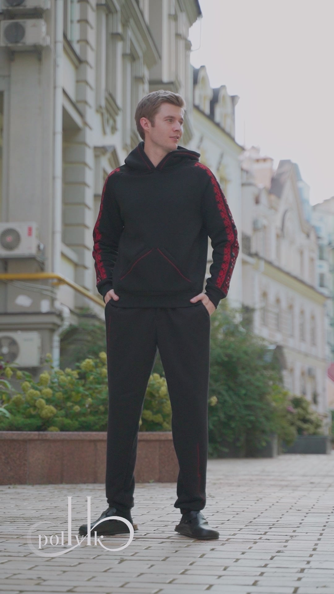 The men’s “Svastya” tracksuit combines authentic Ukrainian symbolism with a modern urban aesthetic.